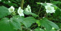 One of my SiL's interests is lighthouses, so we went to see Cana Island lighthouse; low lake levels meant the crossing over a rocky strip was dry. We were all intrigued by the many bushes with large, palmate leaves (rather like grape leaves) and white, five petaled flowers. Speculation was rife as to whether the plant belonged to the rose or blackberry family. I asked the gatehousekeeper on the tiny island about it, and she said the plants were thimbleberries, and they had a workshop on making thimbleberry jam later in the season. Also that they grew exclusively on the lake, rather than bay, side of the island. Didn't find a reference to thimbleberry, but it does mention thimbleweed; however, the leaves of that are more deeply cut. At any rate, the flowers closely resemble that of