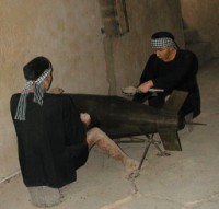 Some of the guys took the opportunity to fire AK-47s at a dollarUSD a round; having wimped out on this golden opportunity, I took her up on this more girly task in lieu. Mine was almost useable, given the expert's guidance as to how much batter to pour on the grill, how long to let it fry before rolling it onto the roller and transferring it to the rack. I figured I could probably make acceptable ones after the first hundred or so, though it would more likely take a thousand or more to become really expert.