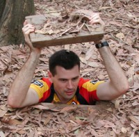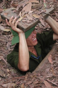 I kept lousy notes of this trip; I'm not exactly certain what day we toured the tunnels, or where we rode that day—I think we were actually bussed to the site. At any rate, among the clever things the American military did during the war was build a military base atop a secret network of enemy tunnels leftover from fighting the French. These tunnels are located outside of Saigon, and go for miles.