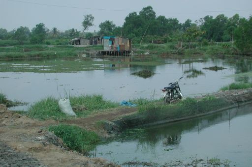 Tim tended to load us on the buses, drive out of the city, unload us and the bikes, water us up and then send us on our way, which meant it was already hot by the time we got going, say around 9 or even 10. (City Vietnamese like to get their daily exercise out of the way early—say by 6am. Very sensible of them. Country ones still get plenty just in their day-to-day existance.)
