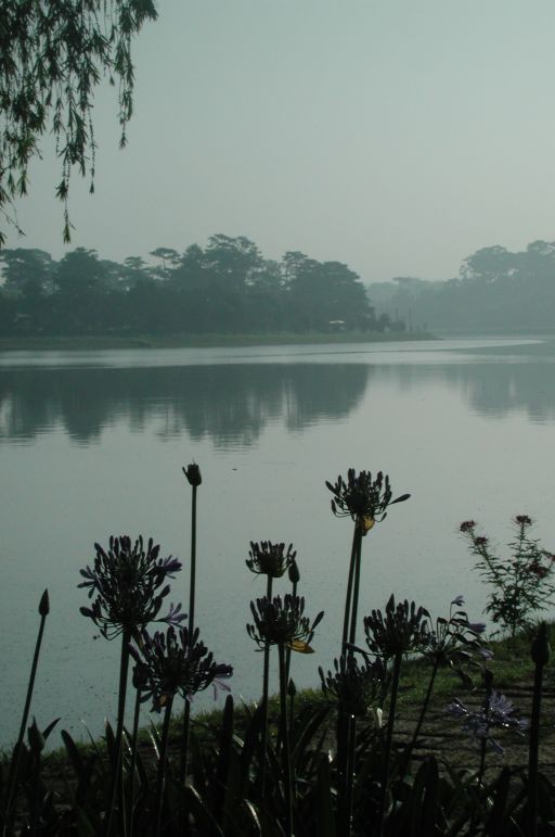 Since today was a rest day, we took a walk in a park around Xuan Huong Lake in Dalat, which is nicknamed ‘Little Paris’. This time, unlike the evening before, when we got totally lost, we managed to keep our bearings. I have flashes of the night before: trying to orient ourselves via the star, the city's big landmark; climbing up hills; little plastic bags of trash heaped here and there. In Vietnam, poor-status women trundle around big cans to pick up the garbage; there are no garbage trucks. There is a lot of litter in third world countries.