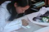 Normally I don't photograph people, but as it was clearly part of this woman's job to demonstrate for the tourists, I took a picture of her. Here she's working on a transparent ground, which has the advantage of making it easy to see the ‘under hand’ —but all the Vietnamese embroideresses worked amazingly fast to my eyes.