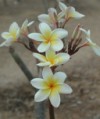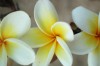 Another shot. I'd heard gardenias had thick petals, which these certainly do. But if they're not gardenias...then what are they? Pretty, at any rate. Update: they're plumaria, also known as frangipani; they are the flowers used in leis. (My thanks to the reader who emailed me this info—I didn't have a clue how to research something for which I only had a picture!)