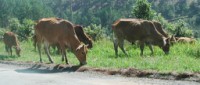 More Vietnamese cattle. Like everything else in Vietnam, they're smaller than the american ones, and always were this solid tan color. In fact as a rule, there was less variety in the domesticated animals than here—two-three breeds of dogs; cats were ordinary shorthairs—I think I might've seen one or two Siamese. Flowers were abundent, but more limited in variety. It gave a nice sort of ‘locality’ and unity, I thought.