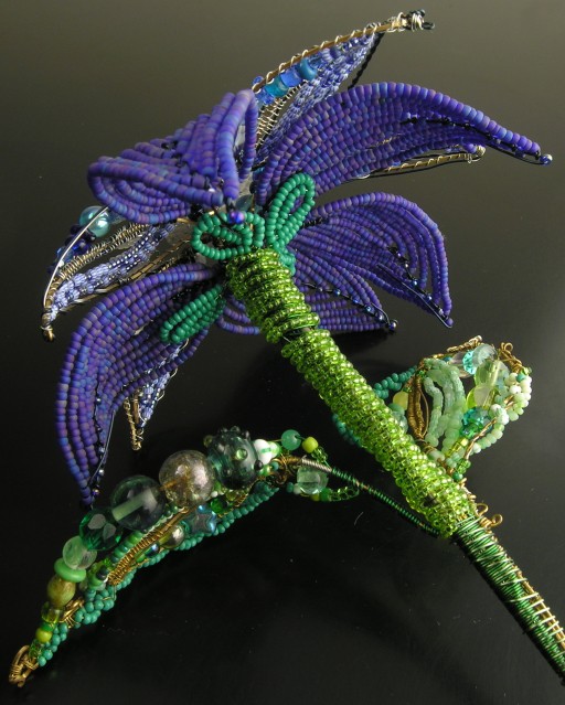 This is the first in a series of a long-standing concept: floral sculptures that mix (relatively) traditional wire-wrapping techniques, needlelace, and french beaded approaches. (Oh, and lampworking, why not?) This piece only incorporates the first, third, (and fourth) techniques, and it took me three or four tries over about 8 years to get to this far; but I'm so happy to finally be making progress.