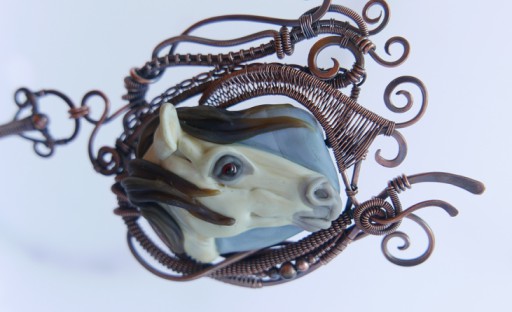 Here we have one of Munshower's gorgeous horses, its whipping mane elegantly echoed in the curling wires: