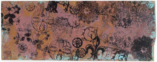 I like a layered look, so I ‘overstamp’ the various images to develop a rich, textured palimpsest. My friend Cyndy was in charge of the actual etching, and she used the standard ferric chloride (available most cheaply, I'm told, from Micromark).[1]